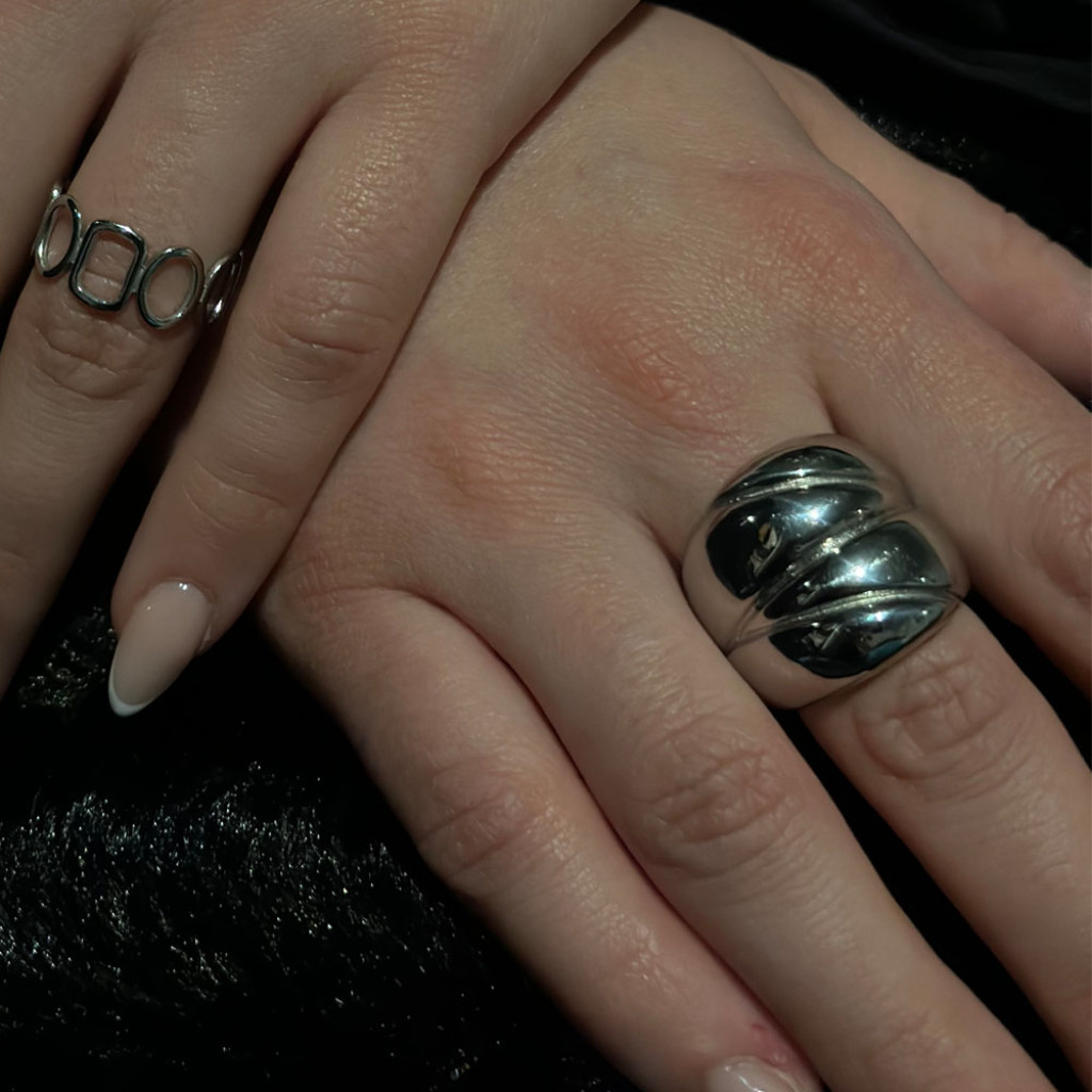 Το "Ασημένιο δαχτυλίδι Sophistication Large Circle" είναι ένα εντυπωσιακό κόσμημα. Το μεγάλο κυκλικό του σχέδιο, κατασκευασμένο με ασημένιο φινίρισμα, αποπνέει μια σοφιστικέ γοητεία. Αυτό το δαχτυλίδι είναι ένα όμορφο σύμβολο κομψότητας και μοντερνισμού.