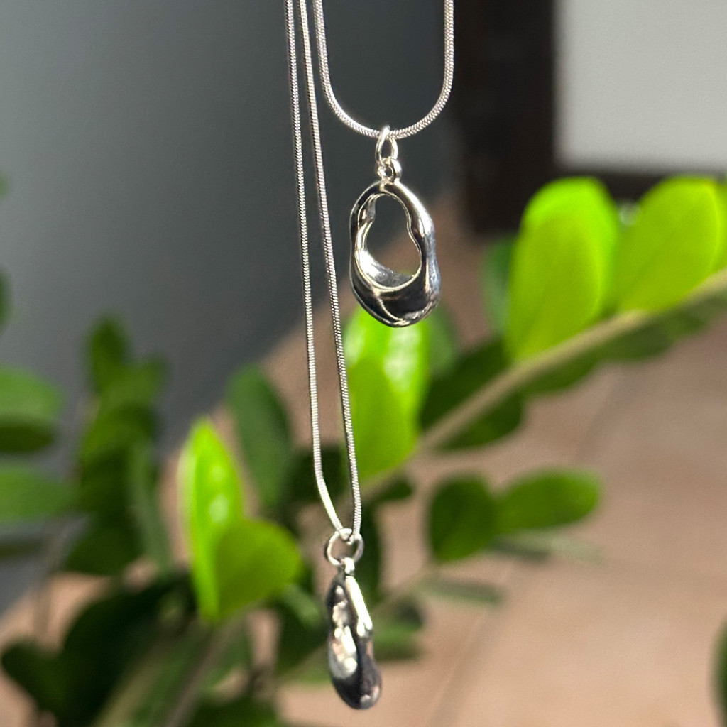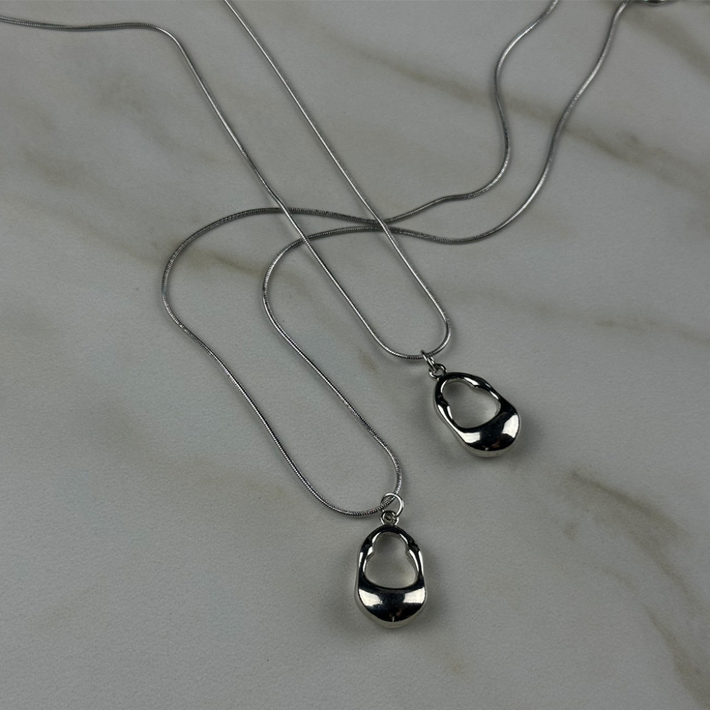 Αναδείξτε τη μοναδικότητά σας με αυτό το εκλεπτυσμένο ασημένιο κολιέ, που ξεχωρίζει για την αφηρημένη του σχεδίαση. Χωρίς συγκεκριμένο σχήμα, το κολιέ αυτό αποπνέει μια αίσθηση ελευθερίας και δημιουργικότητας, προσφέροντας έναν μοντέρνο και καλλιτεχνικό χαρακτήρα. Αυτό το κολιέ είναι το τέλειο αξεσουάρ για κάθε λάτρη του στυλ και της μοναδικότητας!