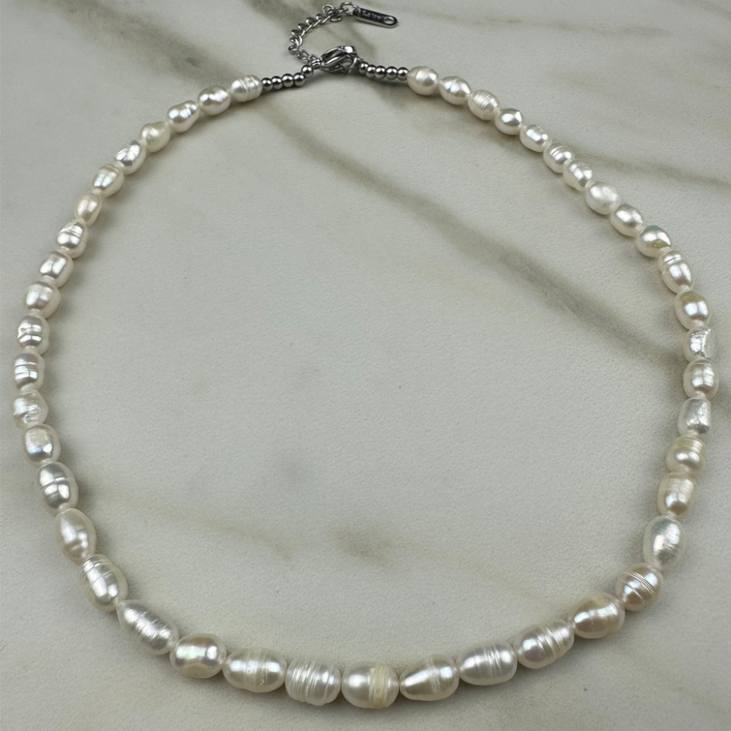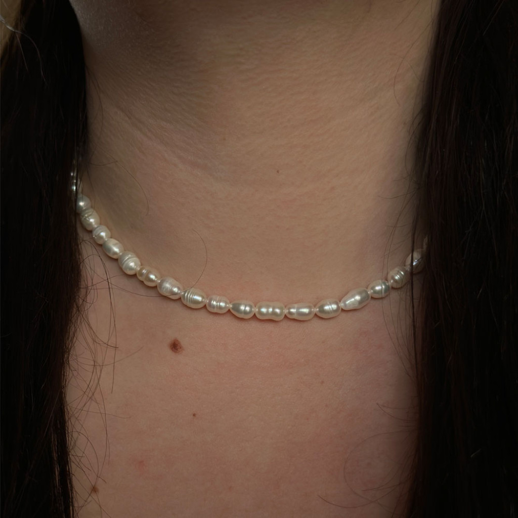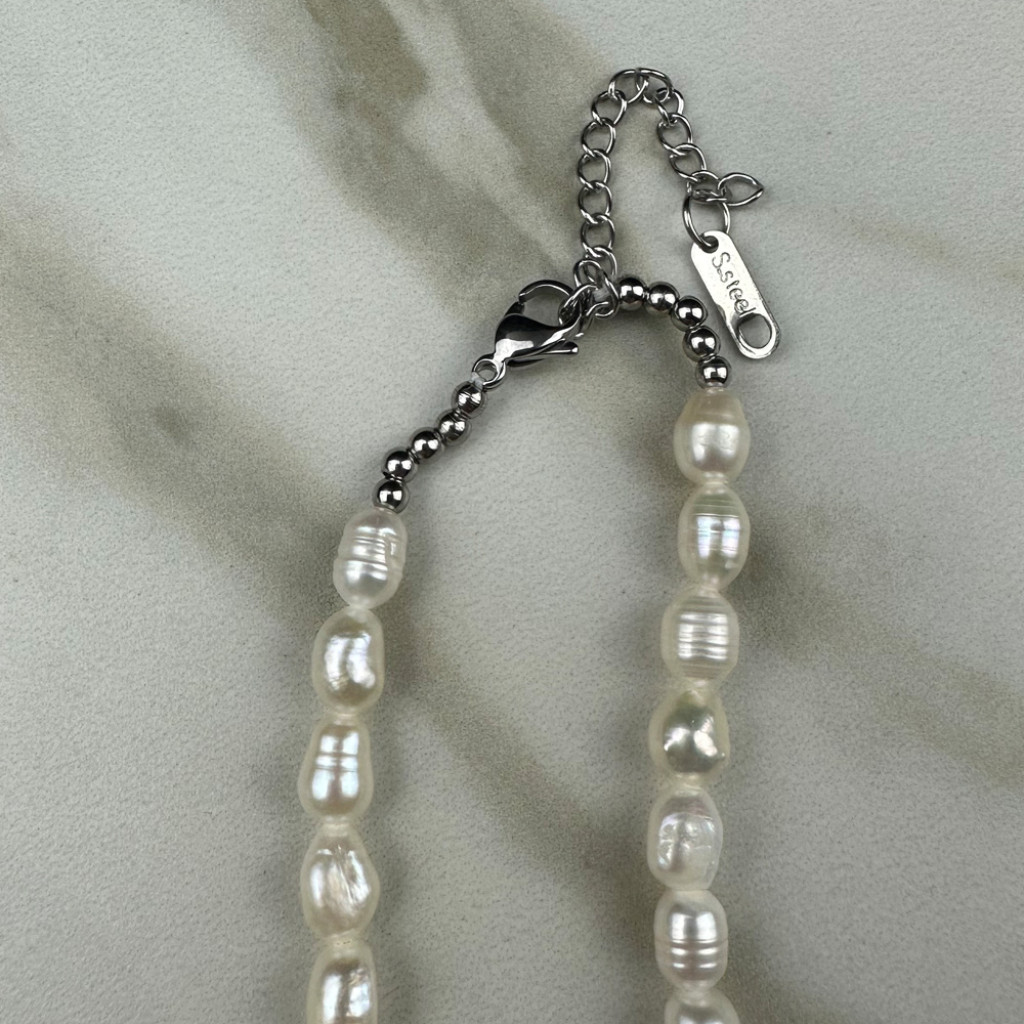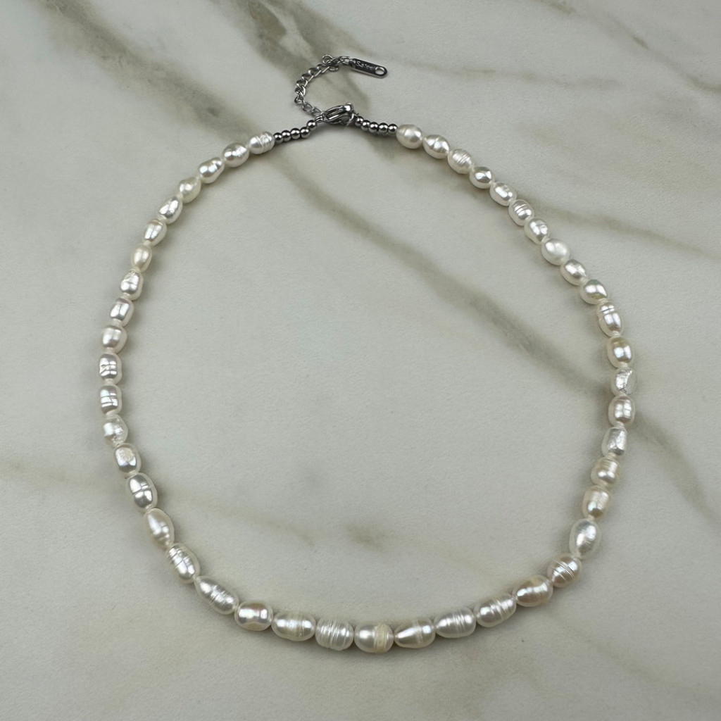 Το "Ασημί κολιέ Pearl Elegance" είναι ένα διαχρονικό κόσμημα. Διαθέτει μια μοναδική, λαμπερή πέρλα που αποπνέει κομψότητα και διακριτική πολυτέλεια. Αυτό το κολιέ είναι ένα όμορφο σύμβολο κλασικής ομορφιάς και χάρης.