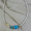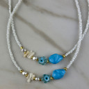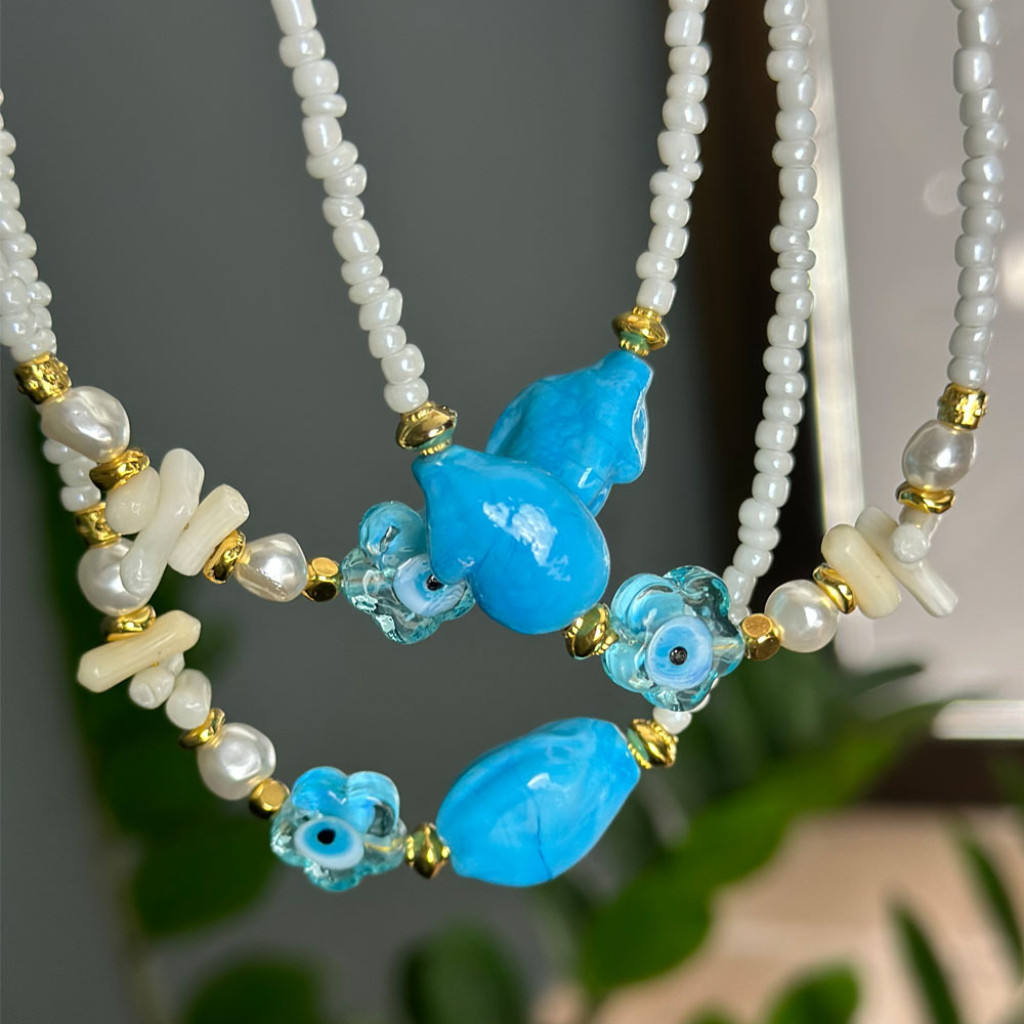 Αγκαλιάστε το πνεύμα του καλοκαιριού και αφήστε το στυλ σας να λάμψει με το καλοκαιρινό μας κολιέ με Μπλε και Λευκές αποχρώσεις.