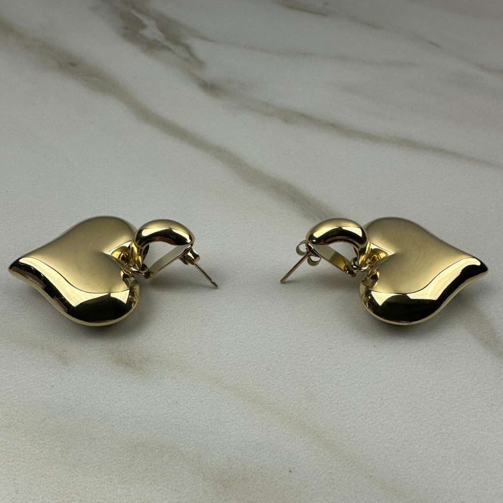 Τα "Χρυσά σκουλαρίκια Big Heart" είναι ένα εντυπωσιακό κόσμημα. Κατασκευασμένα από ανθεκτικό ατσάλι με χρυσή επίστρωση, διαθέτουν μεγάλες καρδιές, συμβολίζοντας την αγάπη και τη συμπάθεια. Αυτά τα σκουλαρίκια προσθέτουν μια πινελιά κομψότητας και ρομαντισμού σε κάθε ενδυμασία.