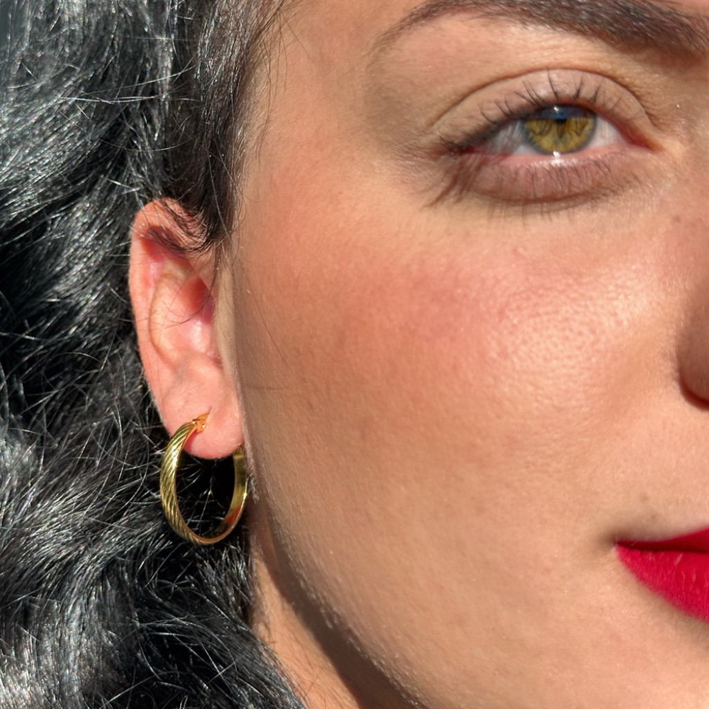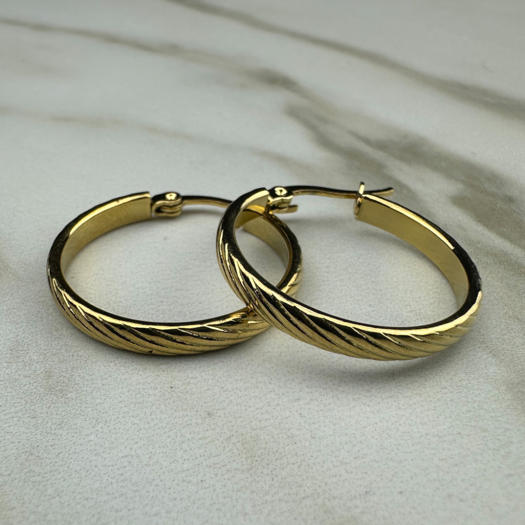 Αυτά τα χρυσά σκουλαρίκια κρίκοι είναι το τέλειο αξεσουάρ για κάθε περίσταση. Κατασκευασμένα από υψηλής ποιότητας ανοξείδωτο ατσάλι, αυτά τα σκουλαρίκια είναι σχεδιασμένα για να αντέχουν στον χρόνο. Η χρυσή τους επικάλυψη προσφέρει μια αίσθηση πολυτέλειας και διαχρονικότητας.