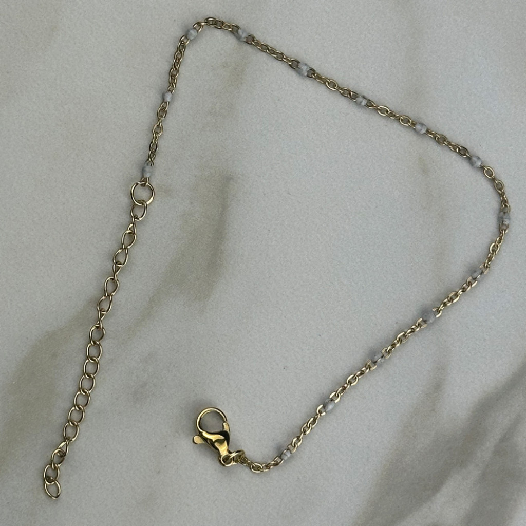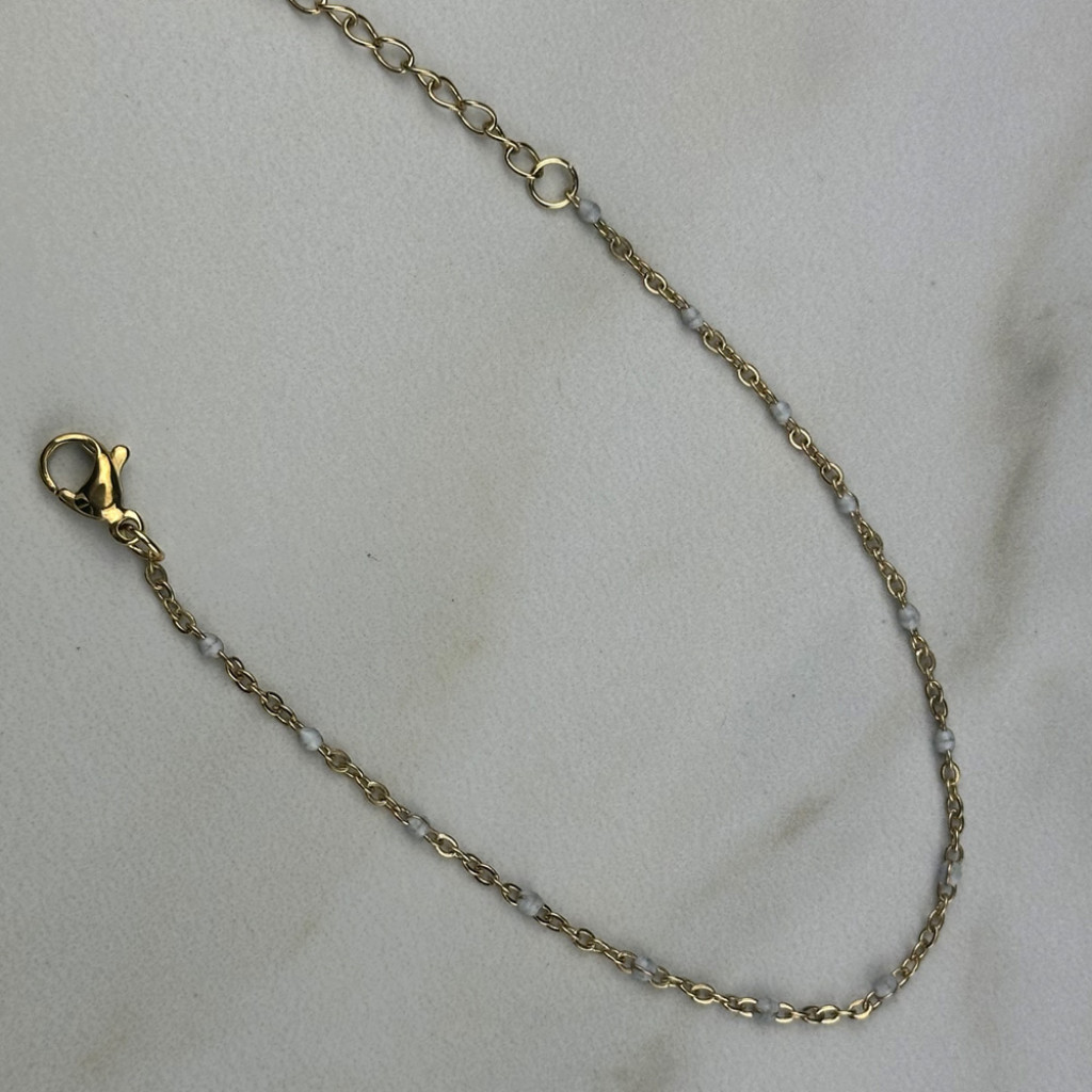 Το χρυσό βραχιόλι White Pearl είναι ένα κομψό κόσμημα που συνδυάζει την πολυτέλεια του χρυσού με την κλασική ομορφιά της λευκής πέρλας. Κατασκευασμένο από υψηλής ποιότητας χρυσό, αυτό το βραχιόλι είναι σχεδιασμένο για να αντέχει στον χρόνο. Η λευκή πέρλα προσθέτει μια διακριτική πινελιά κομψότητας.