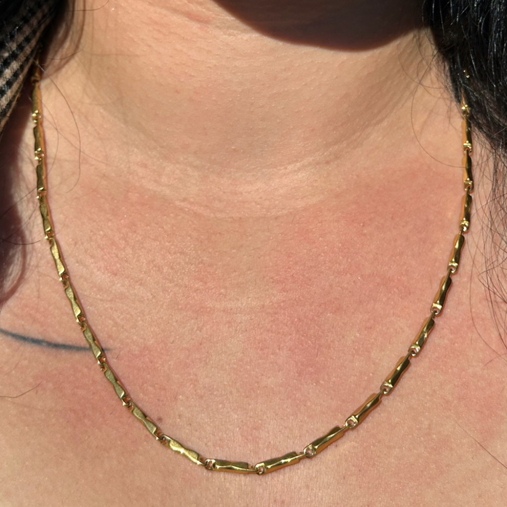 Το χρυσό κολιέ Hesperides, κατασκευασμένο από 100% ανοξείδωτο ατσάλι 304, είναι ένα κόσμημα που αναδεικνύει την απλή αλλά κομψή ομορφιά του χρυσού. Το σχέδιο του είναι εμπνευσμένο από τις Εσπερίδες, τις νύμφες της αρχαίας ελληνικής μυθολογίας που φρουρούσαν τον χρυσό μήλο. Αυτό το κολιέ είναι ένας φόρος τιμής στην αρχαία ελληνική κουλτούρα, προσφέροντας μια μοναδική πινελιά στον κάθε σας στυλ.