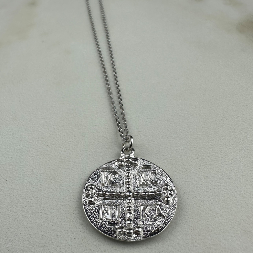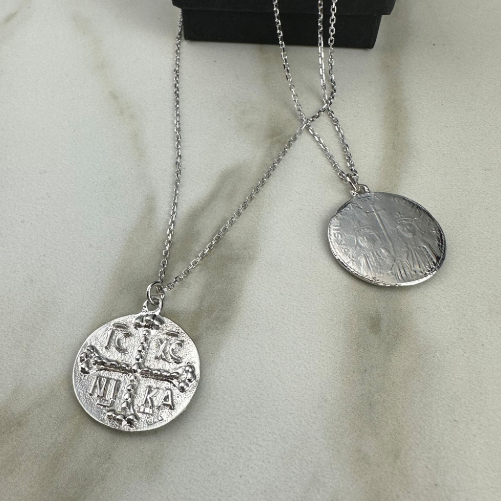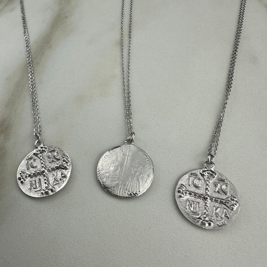 Το κωνσταντινάτο από ασήμι 925 είναι ένα εξαιρετικό κόσμημα που συνδυάζει την παράδοση και την κομψότητα. Κατασκευασμένο από ασήμι 925, αυτό το κόσμημα είναι ανθεκτικό και διαχρονικό. Το σχέδιο του είναι εμπνευσμένο από τα κωνσταντινάτα, τα νομίσματα της Βυζαντινής Αυτοκρατορίας, προσθέτοντας ένα ιστορικό και πολιτισμικό στοιχείο.